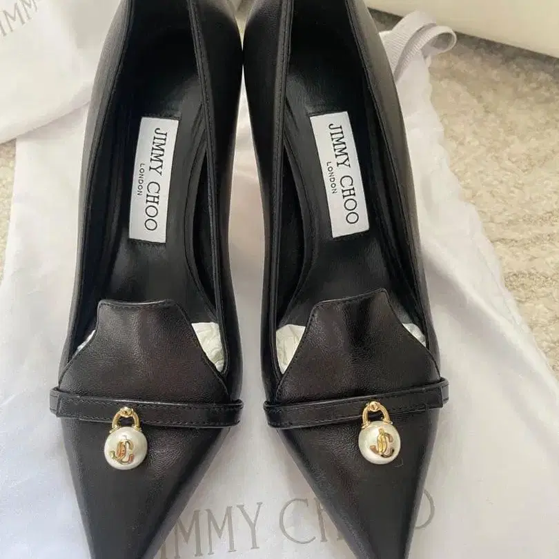 세련된 디자인의 블랙 하이힐, 펄 참 포함. - 브랜드: JIMMY CHOO - 색상: 블랙 - 스타일: 하이힐 - 디자인: 스틸레토 - 장식: 펄 참 - 굽 높이: - 사이즈: 23 방문해 주셔서 감사합니다.
