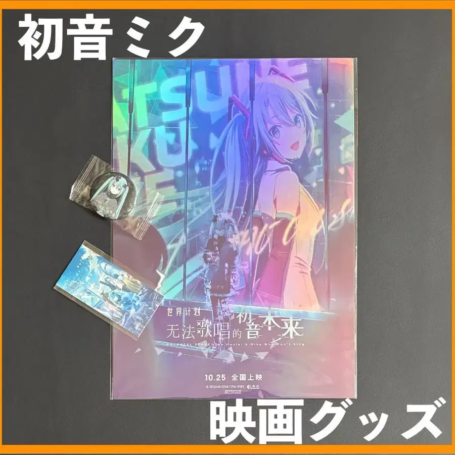 ★ 구하기 어려움, 인기 캐릭터 하츠네 미쿠 애니메이션 영화 [ 극장판 프로젝트 세카이 부서진 세계와 노래할 수 없는 미쿠 ] 중국 극장 상영 영화 특별 사양 캐릭터 홀로그램 포스터 & 캔뱃지 & 티켓형 카드의 세트입니다.