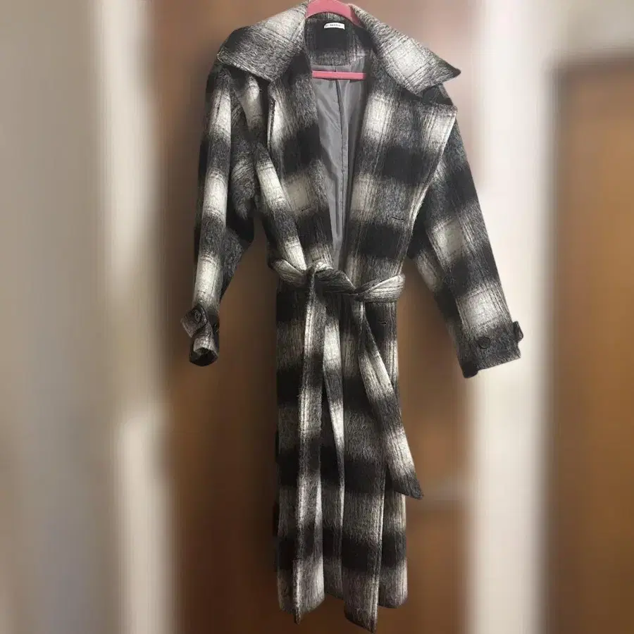 블랙과 화이트 체크 무늬의 롱 코트, 벨트 포함으로 캐주얼에도 포멀에도 최적. - 색상: 블랙과 화이트 체크 무늬 - 디자인: 롱 코트, 벨트 포함 - 소재: 불명이나, 부드러워 보이는 원단 - 스타일: 캐주얼, 포멀 양용 방문해 주셔서 감사합니다. 착용은 2, 3회이며, 보관 상태는 상당히 좋습니다.