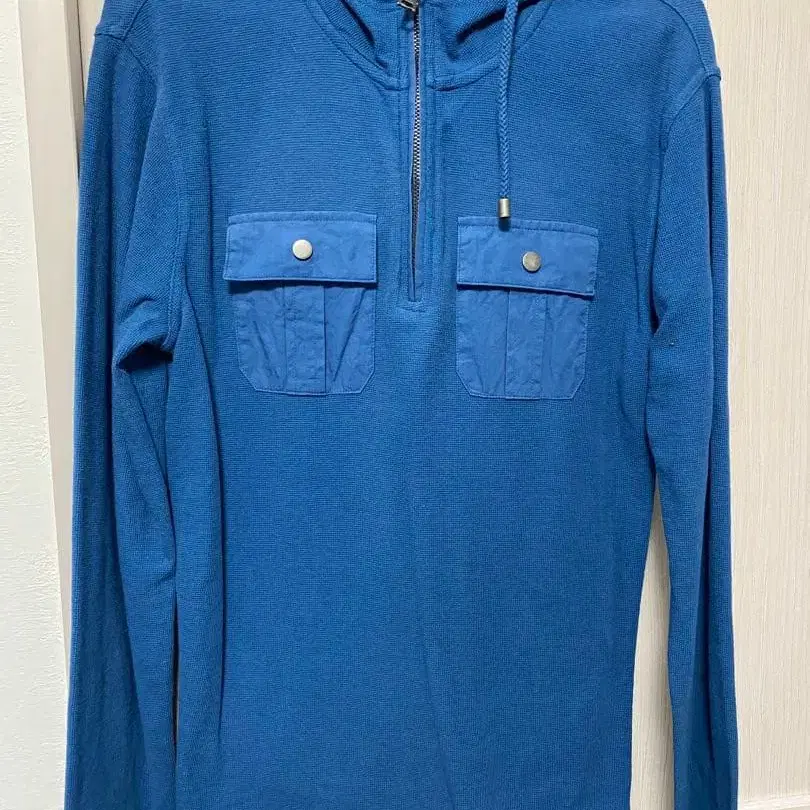 프론트 포켓과 후드 부착이 있는 L 사이즈의 파란색 후드티. - 브랜드: BANANA REPUBLIC - 소재: 코튼 60%, 폴리에스테르 40% - 사이즈: L - 디자인: 프론트 포켓 부착, 후드 부착 - 색상: 파랑 방문해 주셔서 감사합니다.