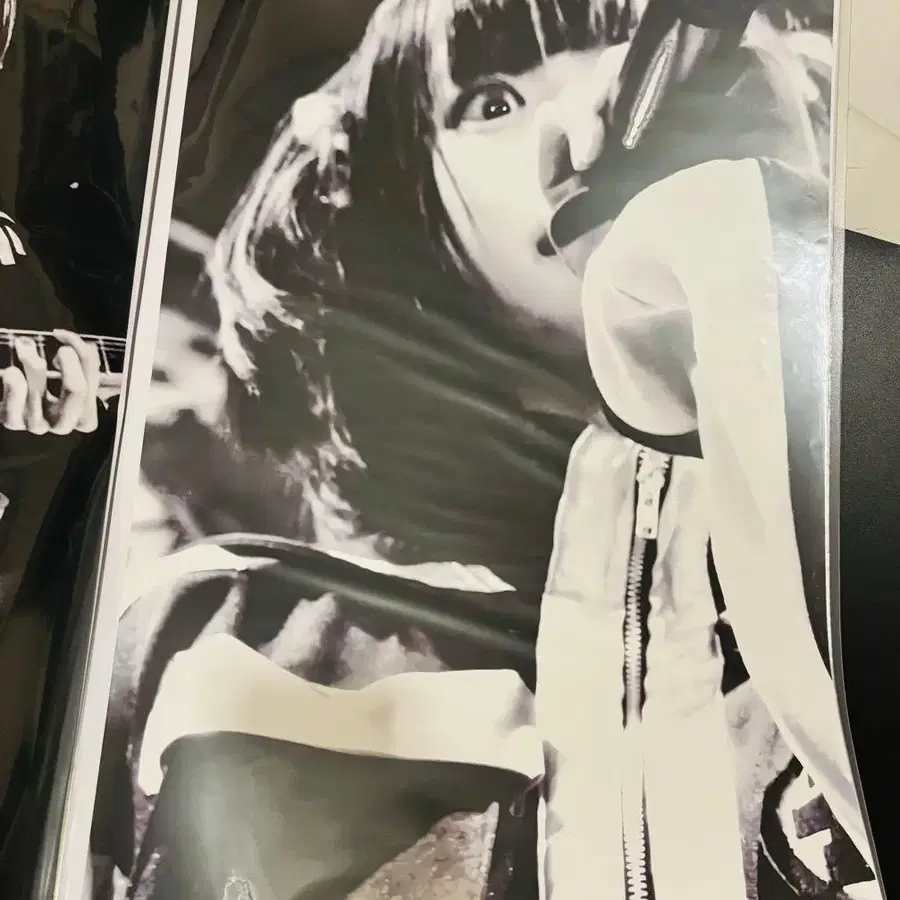 아이돌의 퍼포먼스를 담은 흑백 포스터.