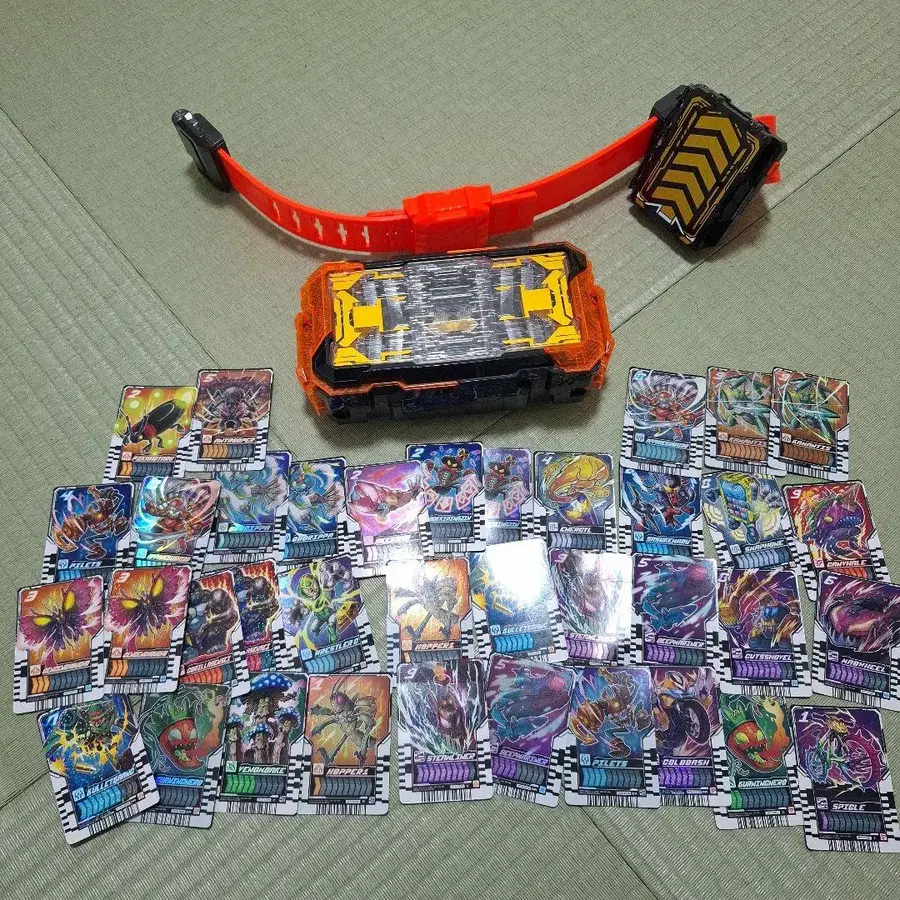 가면라이더 갓챠드의 변신 벨트입니다. 거의 사용하지 않아 새상품급입니다. 벨트, 벨트 고정구, 작동 확인 ○, 카드 홀더 모두 포함되어 있으나, 상자는 없습니다. 카드 37장이 포함되어 있습니다. 일부 카드에 흠집이 있는 것도 있습니다.