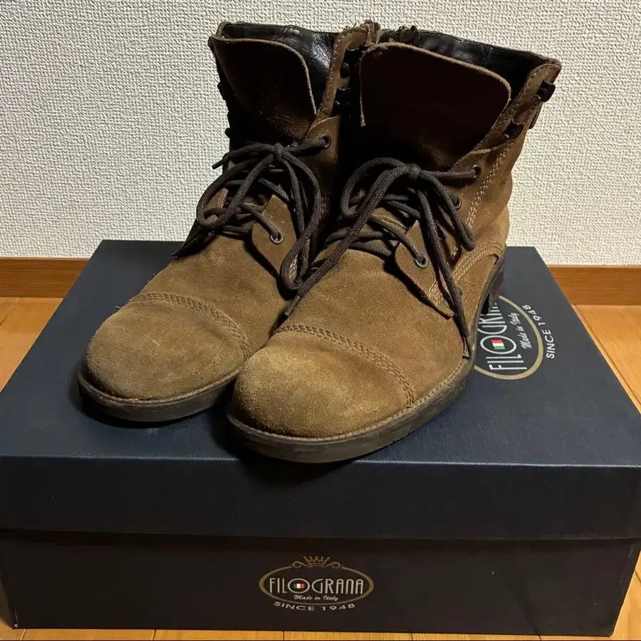 FILOGRANA 스웨이드 사이드 지퍼 부츠 브라운 40입니다.