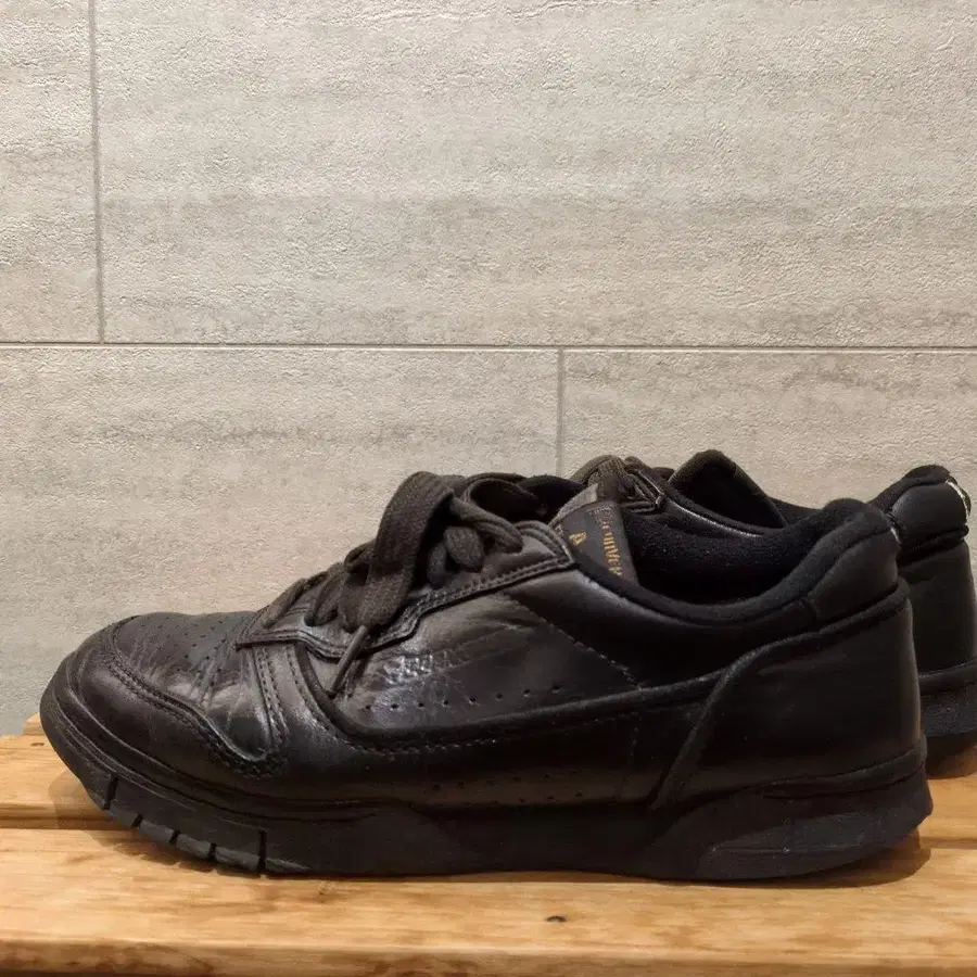 가죽 소재의 블랙 스니커즈, 스타일리시하고 내구성이 좋습니다.