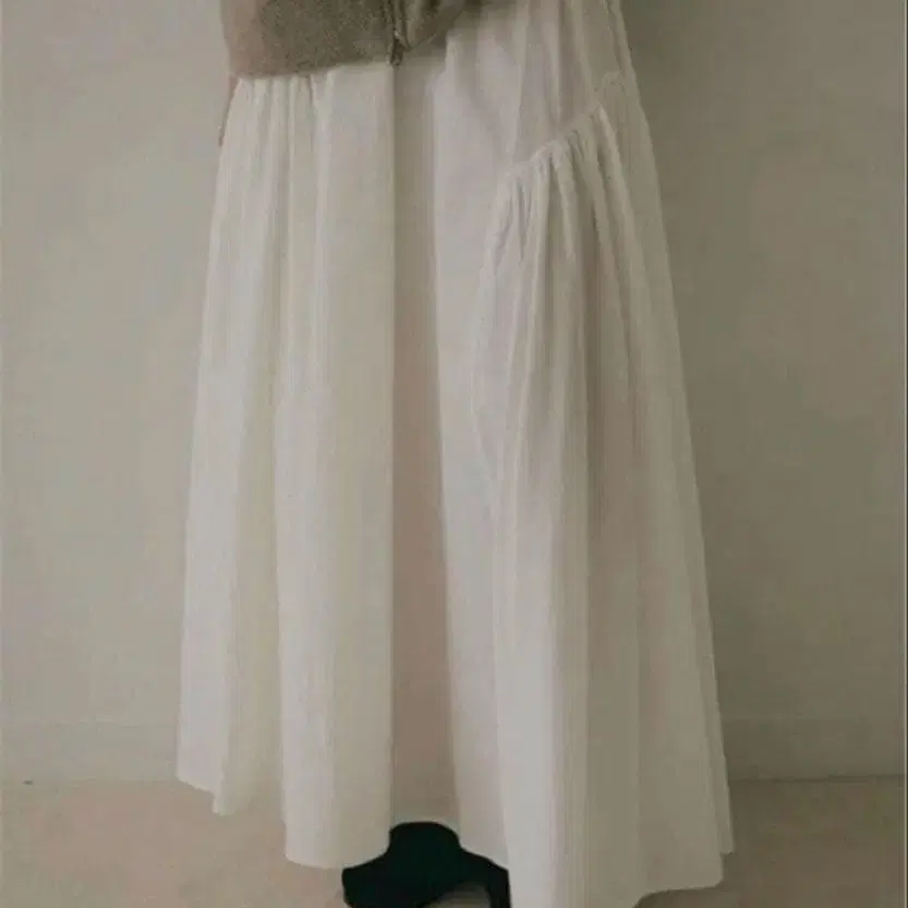 [가격 인하] amel 와셔 볼륨 롱 스커트 아이보리 주름 가공