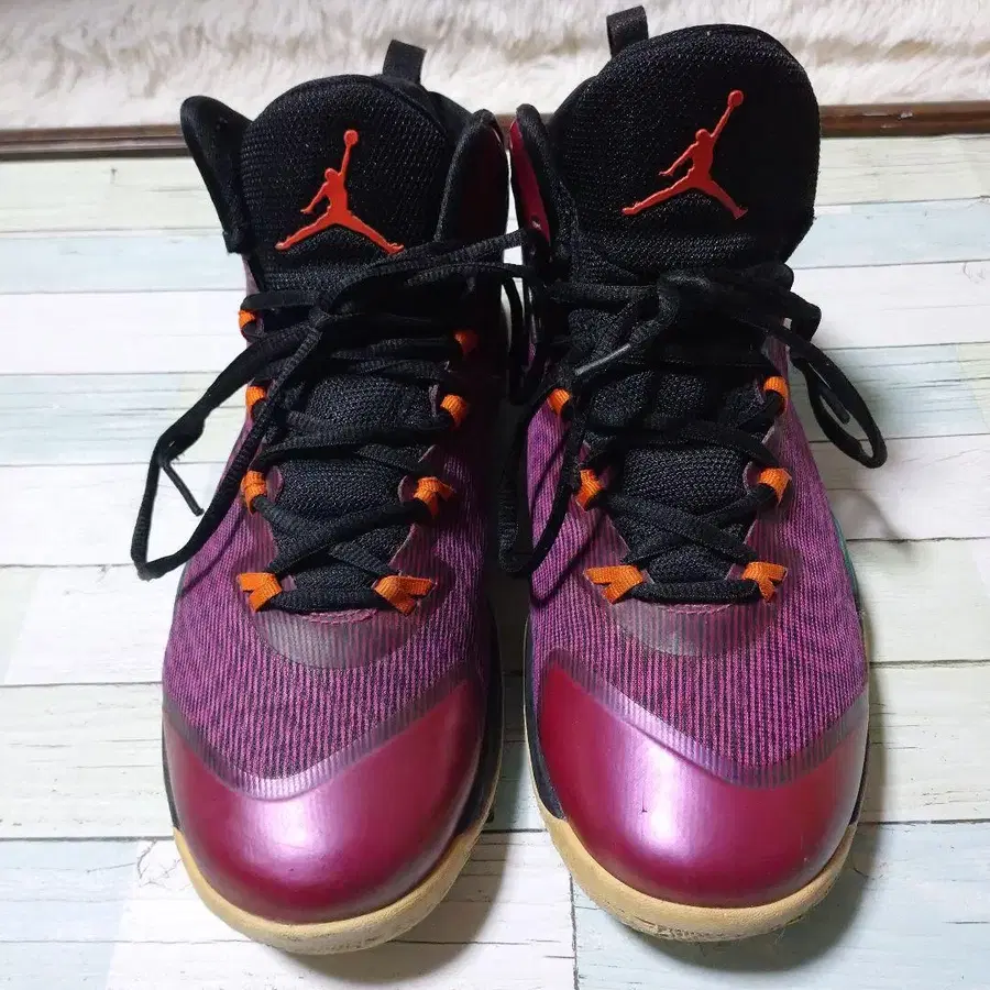 퍼플과 블랙의 하이컷 스니커즈, 러버 솔로 내구성 있음. - 브랜드: Jordan - 색상: 퍼플/블랙/오렌지 - 스타일: 하이컷 - 밑창: 러버 솔 ※ 밑창에는 사용감, 마모가 있지만, 그 외의 부분에는 큰 데미지는 없습니다. 방문해 주셔서 감사합니다.