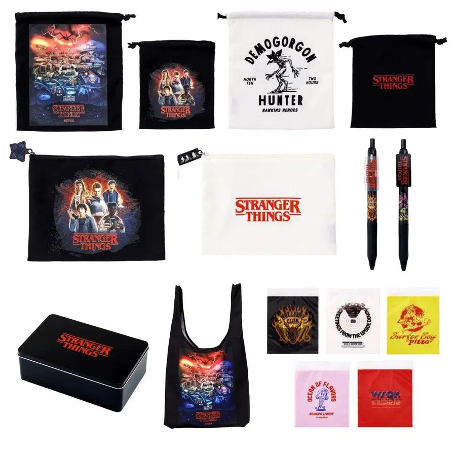 기묘한 이야기 쓰리코인즈 쓰리코 콜라보 미사용 미개봉 새상품 묶음 판매 복조리 2개 세트 (2종류) 파우치 1개 (2종류) 5가지 패턴의 재고 백 에코백 양철통 볼펜 ⚠️ 다른 중고거래 사이트에서도 판매 중이므로, 재고 소진 시 삭제될 수 있습니다.