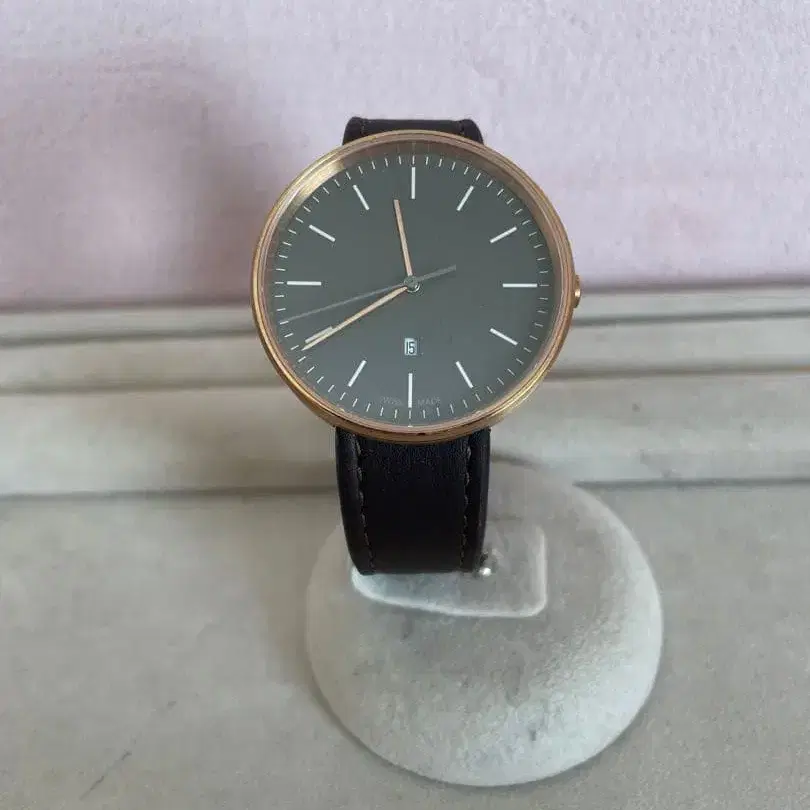 심플하고 엘레강트한 디자인의 아날로그 쿼츠 손목시계입니다.
