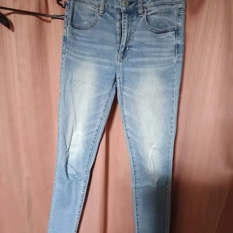 슈퍼 스트레치 라이트 블루 데님으로, 스키니 핏 스타일이 특징입니다. - 브랜드: AMERICAN EAGLE 아웃피터스 - 스타일: 슈퍼 스트레치 - 색상: 라이트 블루 - 디자인: 하이 라이즈 스키니 핏 허리 약 35cm, 총길이 약 91cm, 인심 약 71cm. 클리닝 완료. 방문해 주셔서 감사합니다.