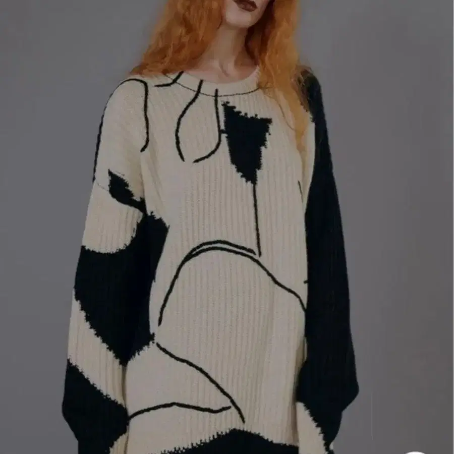 • 그레이 그래픽 로고 오버 사이즈 니트