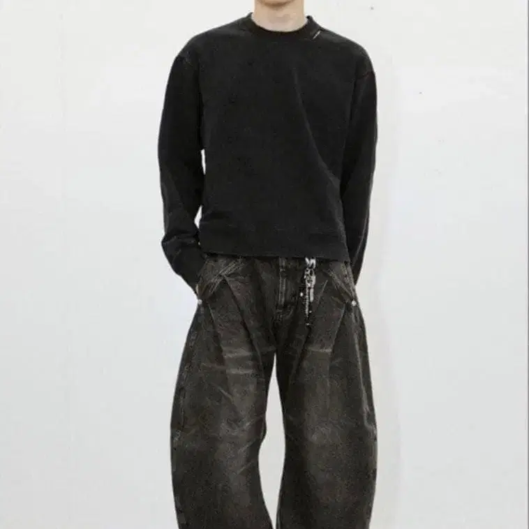 • AIVER 오버다이 배기 크러쉬 데미지 데님 블랙