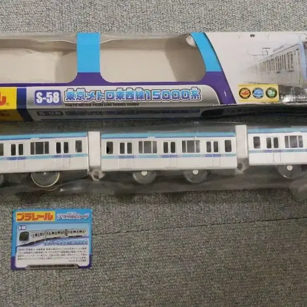 타카라토미의 프라레일 시리즈, S-58 모델의 실버와 블루 차량입니다.