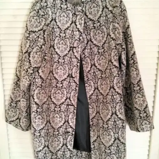 ◎ 몇 년 전, 차분한 두 가지 색상 조합과 클래시컬한 다마스크 무늬에 반해 구매한 Dissy의 다마스크 무늬 노카라 코트입니다.