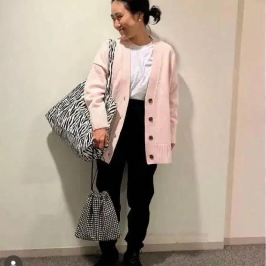 택 포함 언클레이브 메리노울 니트 가디건 핑크 카네코 아야 착용