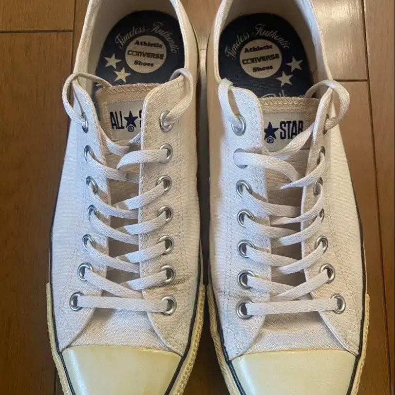 캔버스 소재의 화이트 스니커즈. 론 헤르만과의 콜라보 상품입니다. - 브랜드: 컨버스 - 색상: 화이트 - 디자인: 로우컷 - 소재: 캔버스 - 사이즈: 27.5cm 박스 없음 사용감은 있지만, 전체적으로 깔끔하다고 생각합니다. 중고품이므로 예민하신 분, 완벽을 추구하시는 분은 삼가해 주세요. 이미지로 확인, 동의하신 후 구매해 주세요. 방문해 주셔서 감사합니다.