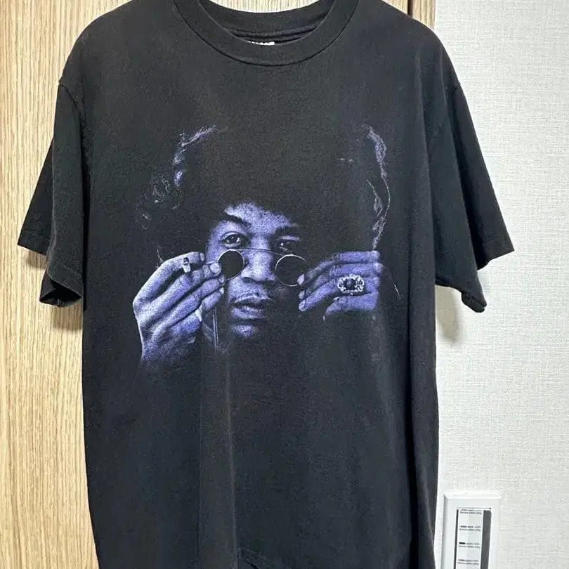 Jimi Hendrix 지미 헨 빈티지 t셔츠 사이즈: L 컬러: 블랙 기장: 68cm 어깨 너비: 50cm 가슴 너비: 53cm 사용감은 있지만 핑홀 등의 데미지는 없습니다. 밑단의 스티치가 약 2cm 정도 풀려 있습니다. 방문해 주셔서 감사합니다.