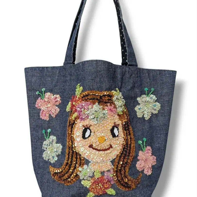 ◯ Curly Collection 데님 토트백 스팽글 비즈 ◯ 사이즈 (cm) 세로 27 x 가로 35 바닥 15cm 숄더 가능합니다. 약간의 오차는 양해 부탁드립니다. 내부 포켓 1곳 ◯ 눈에 띄는 흠집/얼룩 없음 눈에 띄는 흠집이나 얼룩은 없지만, 손잡이에 약간 색바램이 있습니다. 사진을 확인하신 후 구매 부탁드립니다. 그 외, 스팽글이나 비즈에 깨진 곳 없이 깨끗합니다. ◯ 익명 배송 컴팩트하게 접어 24시간 이내에 발송합니다 (*^^*)