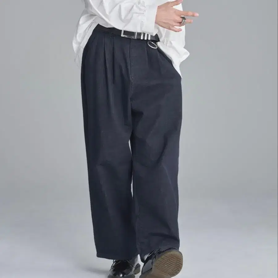 • MENES 다크 그레이 와이드 레그 데님 팬츠