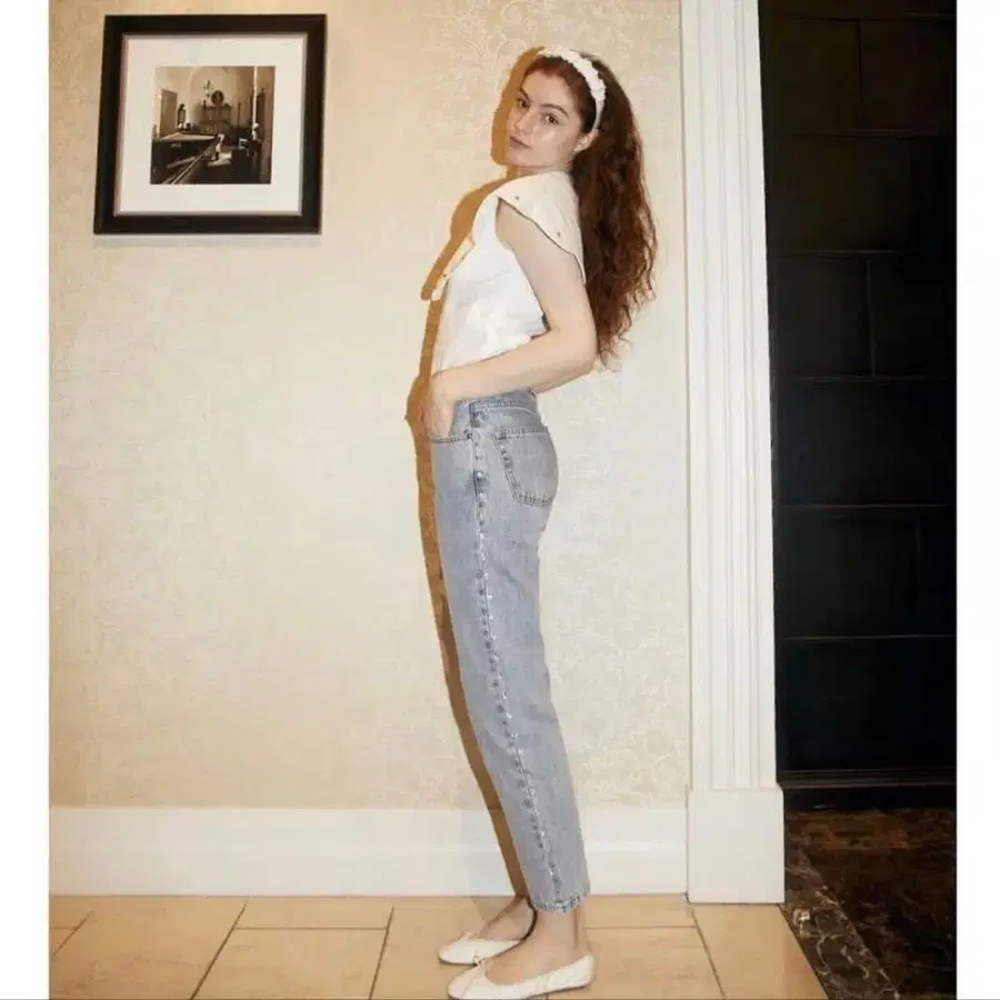 보이프렌드까지는 아니지만 슬림 스트레이트 실루엣입니다. 절묘한 내추럴함과 캐주얼하지 않은 여성스러움을 양립시켜주는 디자인입니다.
