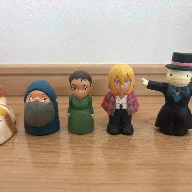 하울의 움직이는 성의 손가락 인형 5개 세트입니다. - 캐릭터: 힌, 황야의 마녀, 소피, 하울, 허수아비 카브 - 소재: 소프트 비닐 - 세트 내용: 5개 세트 - 디자인: 하울의 움직이는 성 잘 부탁드립니다.