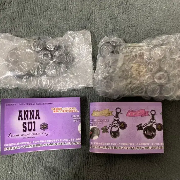 ANNA SUI 블랙 컬러 마스코트 키체인, COSME MASCOT COLLECTION 2종 세트 B 실키 아이 컬러 E 로즈 프레스드 파우더 G1160