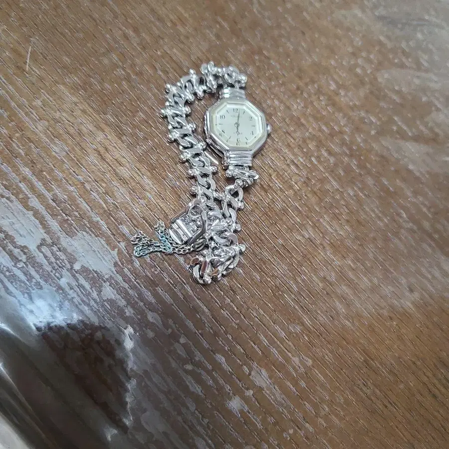 세이코의 팔각형 다이얼을 가진 아날로그 팔찌 워치. - 소재: 실버 - 모양: 팔각형 - 다이얼 색상: 크림색 - 스타일: 팔찌 워치 - 기능: 아날로그 표시 배터리가 방전되어 멈춰 있습니다. 방문해 주셔서 감사합니다.