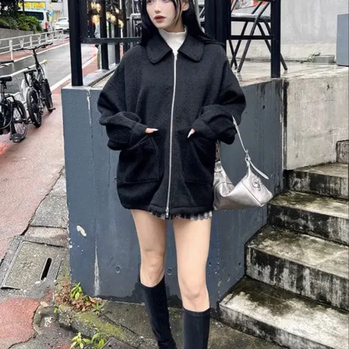 • STRUCTURE 울 지퍼 업 블루종 자켓