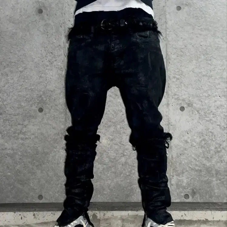 AIVER 오버다이 배기 크러쉬 데미지 데님 블랙