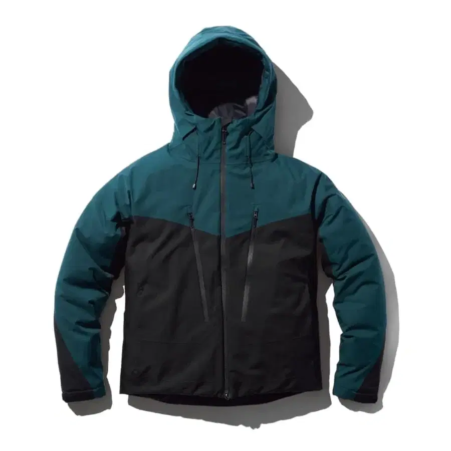 자동 번역되었어요. 원문보기리버 그린과 블랙의 투톤 컬러, 후드 부착 아우터 자켓.