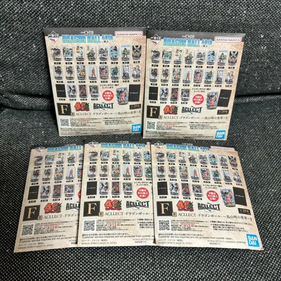 드래곤볼 40th 제일복권 제2탄 F상 ACLLECT -드래곤볼- ~토리야마 아키라의 세계~Ⅱ 5개 세트 14개까지 묶음 가능 2 로트부터이므로 중복될 가능성 있음 트러블 방지를 위해 반품 및 교환 불가