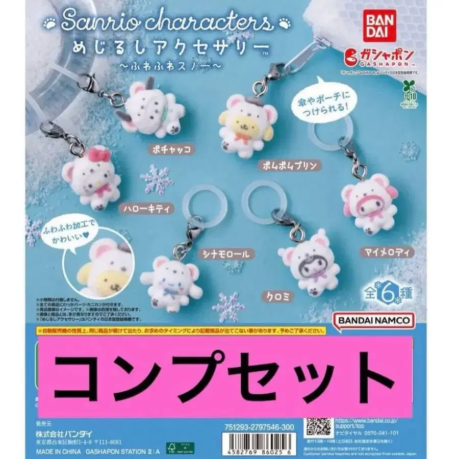 산리오 포근포근 스노우 메지루시 액세서리 전 6종 컴플리트 세트