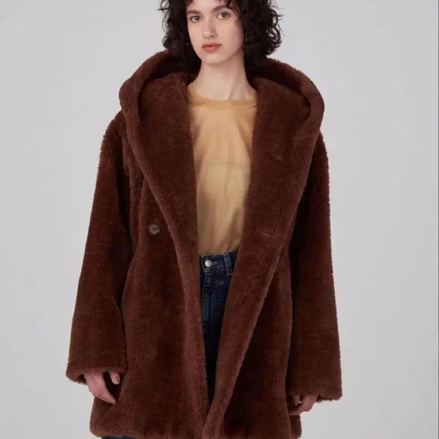 빅 후드 디자인이 럭셔리한 인상의 코트.