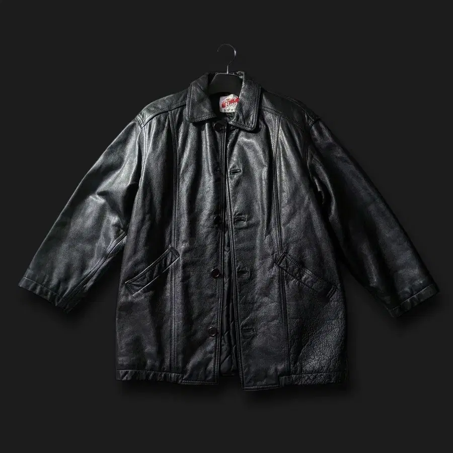 최상급 90s 빈티지 구제 의류 가죽 카 코트 소가죽 천연 가죽 L 블랙