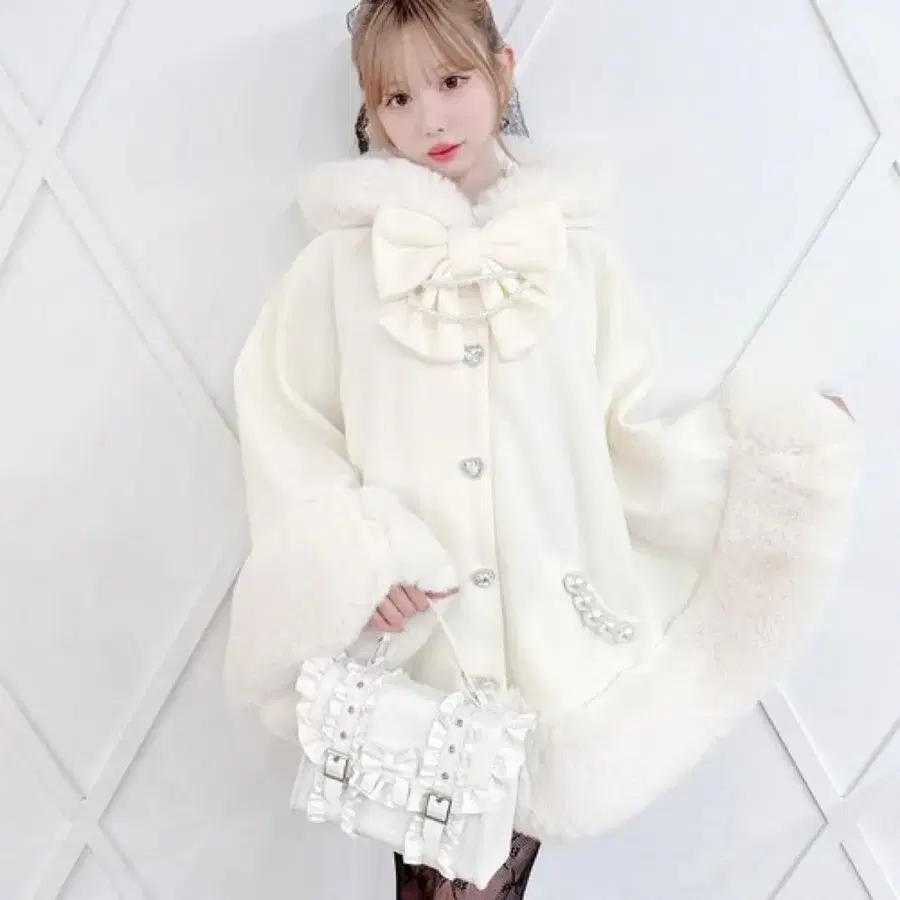 화이트 퍼 달린 케이프 판초