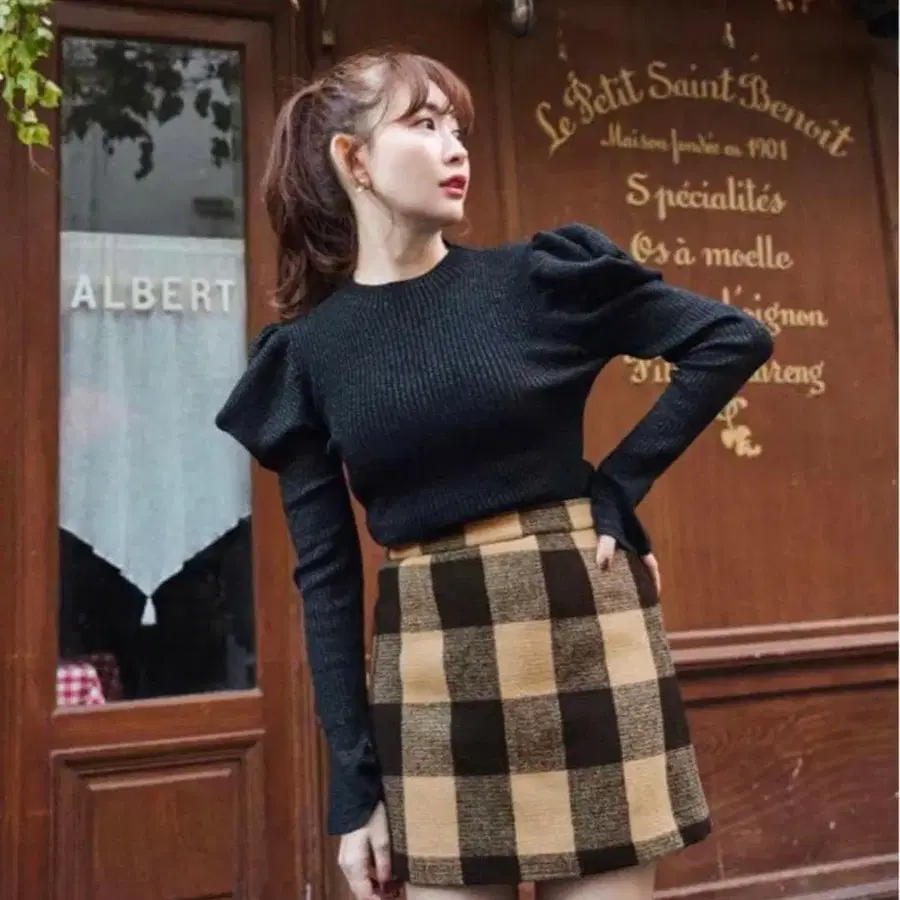 Arpege story 캐주얼 스웨터와 플레어 스커트 저스길리티