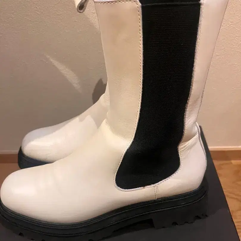 천연 가죽 리본 포함 화이트 부츠 새상품 37