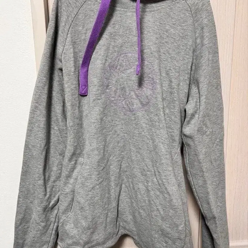 후드 부착된 그레이 색상의 MAMMUT 후드티, 보라색 끈이 특징입니다. - 브랜드: MAMMUT - 사이즈: L (EU), XL (Asia) - 색상: 그레이 - 특징: 후드 부착, 보라색 끈 방문해 주셔서 감사합니다.