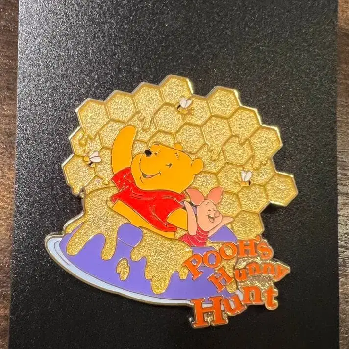 푸우와 피글렛이 그려진 벌집 디자인의 금속제 핀 배지. - 캐릭터: 푸우 - 디자인: 벌집 디자인 - 텍스트: POOH'S HONEY HUNT - 소재: 금속제 - 색상: 멀티 컬러 ( 옐로우 컬러, 빨간색, 핑크 ) 방문해 주셔서 감사합니다.