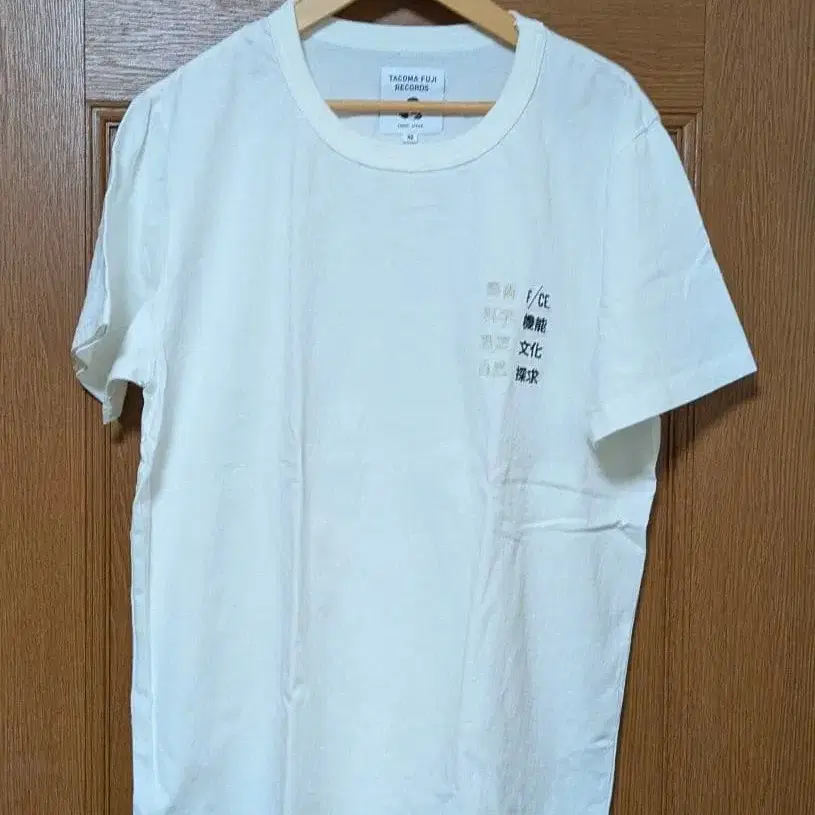 TACOMA FUJI RECORDS와 F/CE.의 콜라보 T셔츠. - 브랜드: TACOMA FUJI RECORDS - 색상: 화이트 - 사이즈: M 시착만 한 상품이며, 홈 클리닝 이후 집에서 접어 보관했습니다.