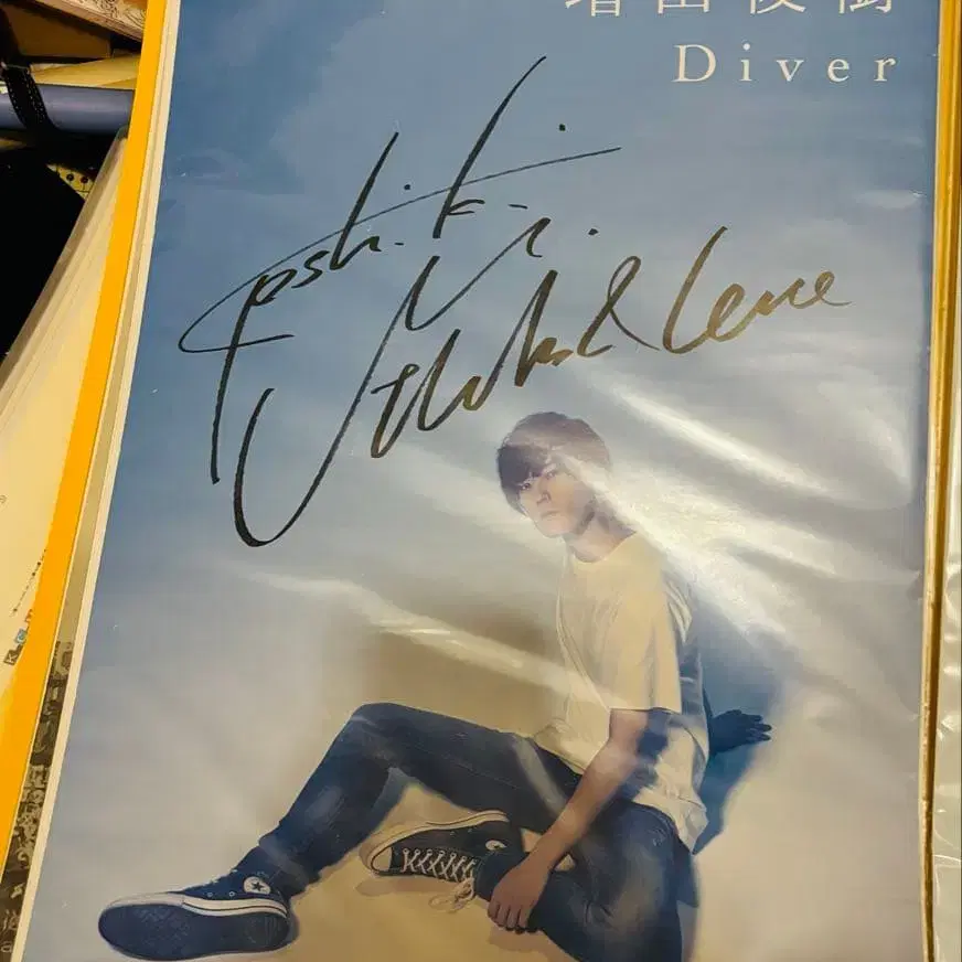 자동 번역되었어요. 원문보기마스다 토시키의 사인 포함 포스터 [ Diver ] , 파랑을 기조로 한 전신 디자인.