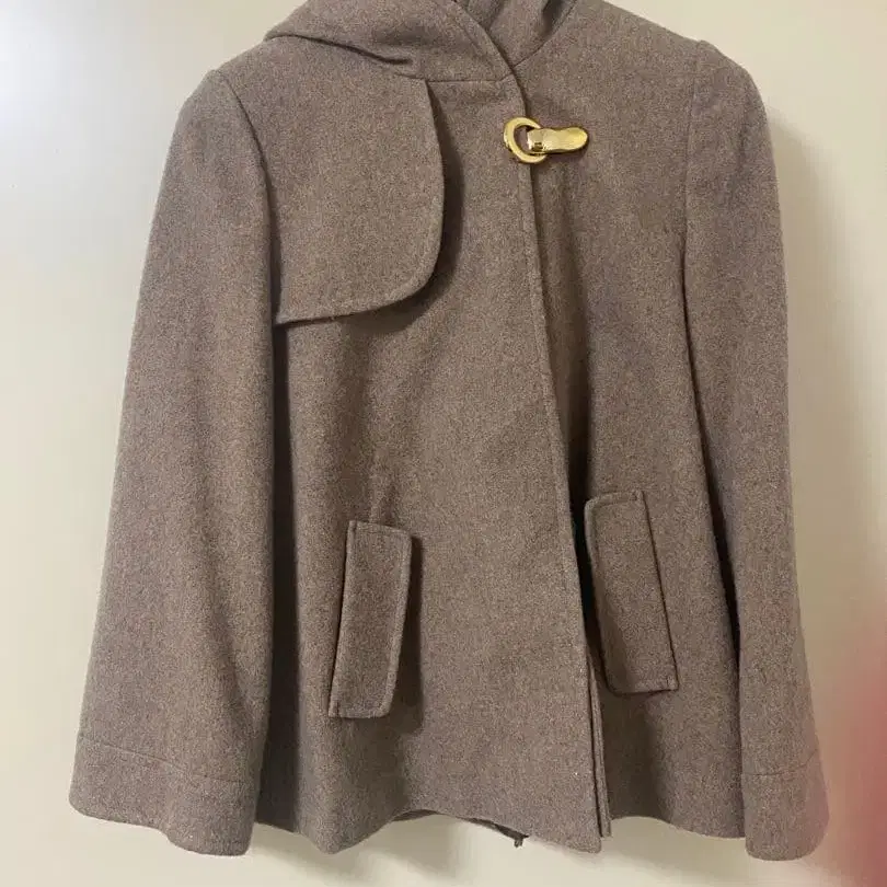 후드 부착 그레이 울 코트 새상품