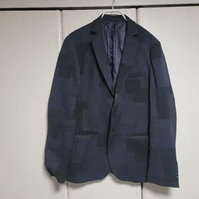 방문해 주셔서 감사합니다. 이 상품은 DANIELE ALLESANDRINI(다니엘레 알레산드리니)의 네이비 + 블랙 지오메트리컬 프린트 자켓입니다. 사이즈는 52입니다. 평소 50 또는 52를 착용하지만, 체감상으로는 50에 가까운 사이즈감이었습니다. 깊은 네이비와 블랙 컬러에 디자인성이 높은 패턴이 프린트된 자켓으로, 색상은 차분하여 화려하지는 않지만 확실히 디자이너 브랜드임을 알 수 있는 높은 디자인성을 가지고 있습니다. 소재도 부드러워 착용감도 쾌적합니다. 형태는 심플한 노치 라펠, 2버튼에 4버튼 커프스, 더블 벤트의 테일러드 스타일이라 업무복으로도 착용하실 수 있을 것 같습니다.