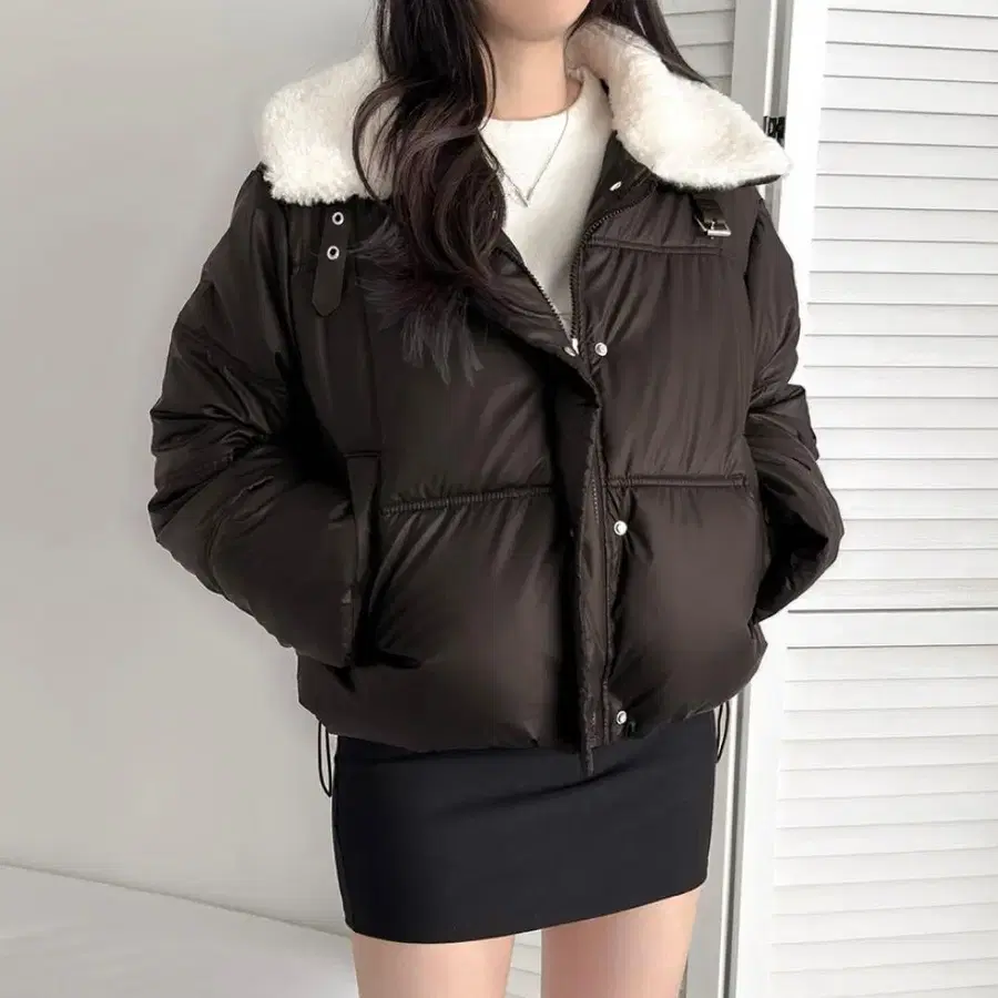 블랙 숏 다운 자켓