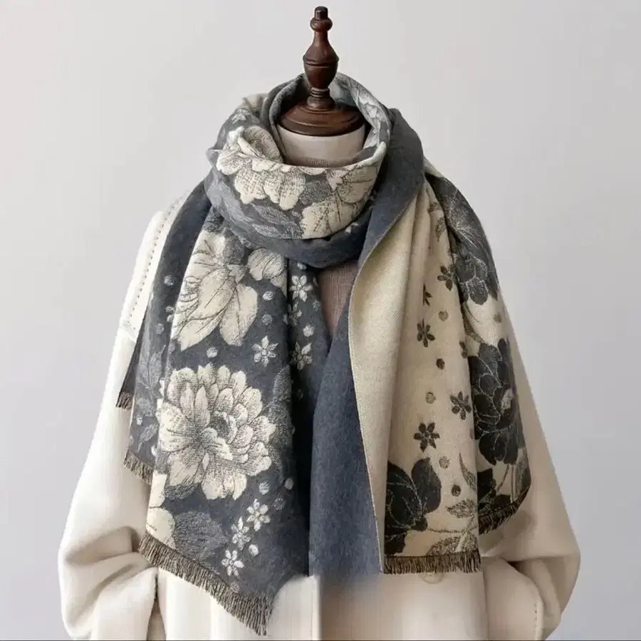 꽃무늬 디자인의 대형 스톨, 부드러운 소재감이 매력적입니다. - 색상: 그레이/화이트 - 디자인: 꽃무늬 - 프린지: 있음 - 소재: 불명이나 부드러워 보임 - 사이즈: 180cm x 65cm - 스타일: 캐주얼 방문해 주셔서 감사합니다.