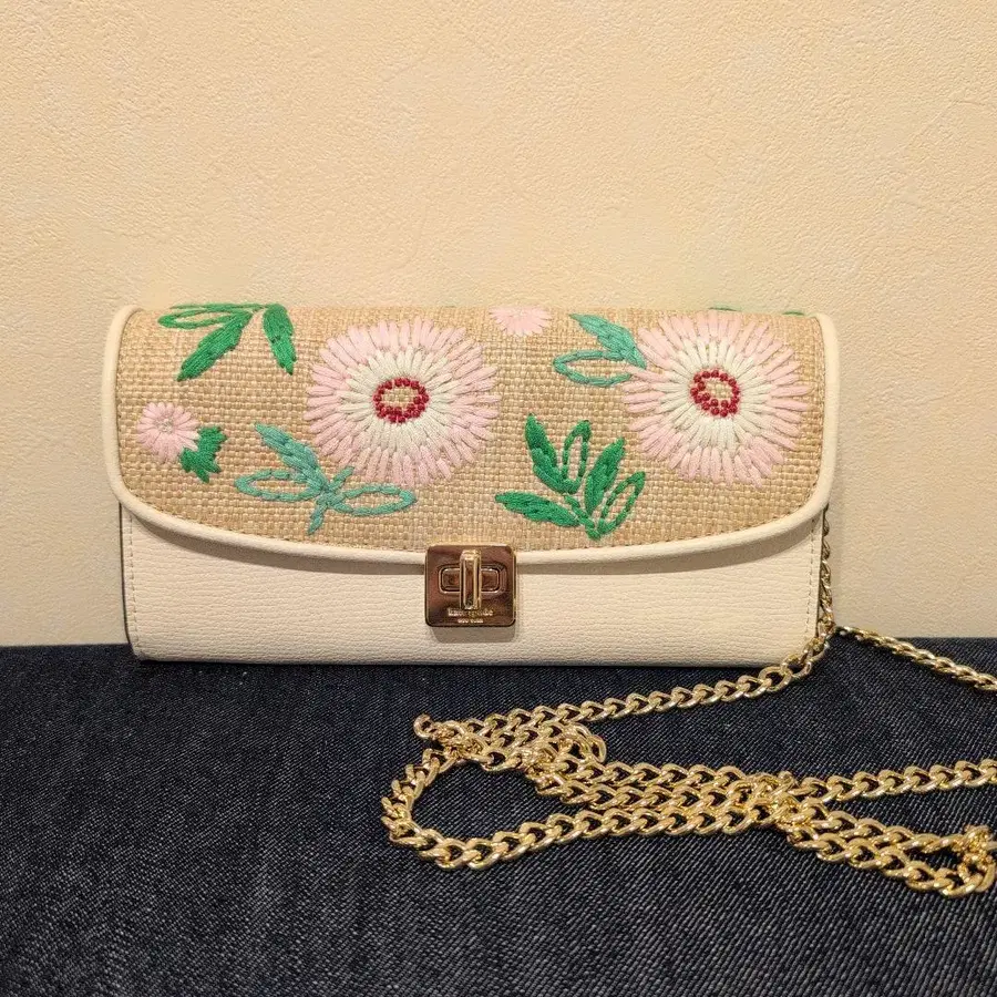 구매 후 미사용 상태로 부직포에 보관했습니다. 사진에 있는 지갑만 해당됩니다. 스트로우 소재의 꽃무늬 자수가 있으며 체인이 달려 있어 미니 백처럼 사용할 수도 있습니다. 안쪽에는 카드 슬롯과 지퍼 수납 공간이 있어 지갑으로도 사용할 수 있습니다. 소재 스트로우, 소가죽 사이즈 10cm x 19cm x 3.5cm 체인 길이 119cm 카드 슬롯 있음 지퍼 수납 컴파트먼트 체인 숄더 포함 발송은 간이 포장 및 리사이클 포장으로 가장 저렴한 방법으로 발송합니다. 자택 보관이므로 발송 전 마지막으로 한 번 검품하지만, 누락이 있을 수도 있으니 신경 쓰이시는 분은 삼가해 주시기 바랍니다. 케이트 스페이드 katespade 케이트 스페이드 피비 페스티벌 플로럴 스트로우 턴락 월렛 온 어 체인 월렛 온 체인