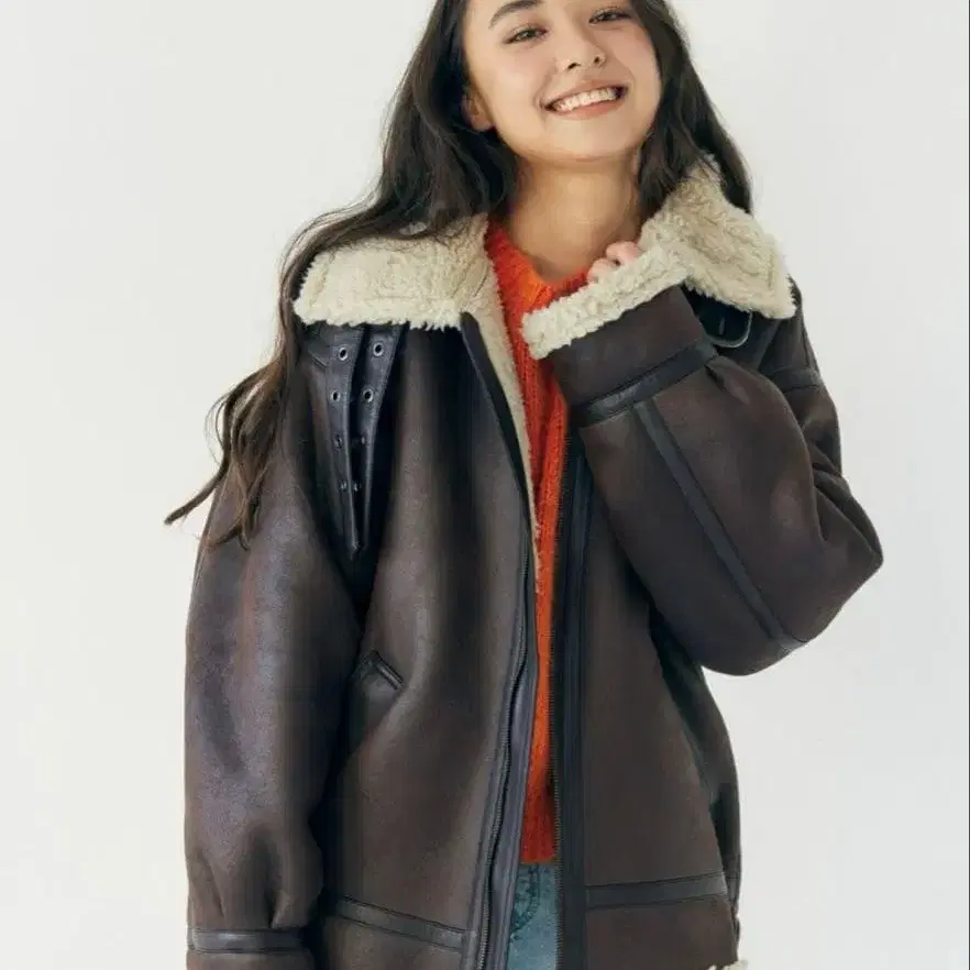 가격 대폭 인하 JEANASIS 리버서블 무스탕 퍼 블루종 브라운