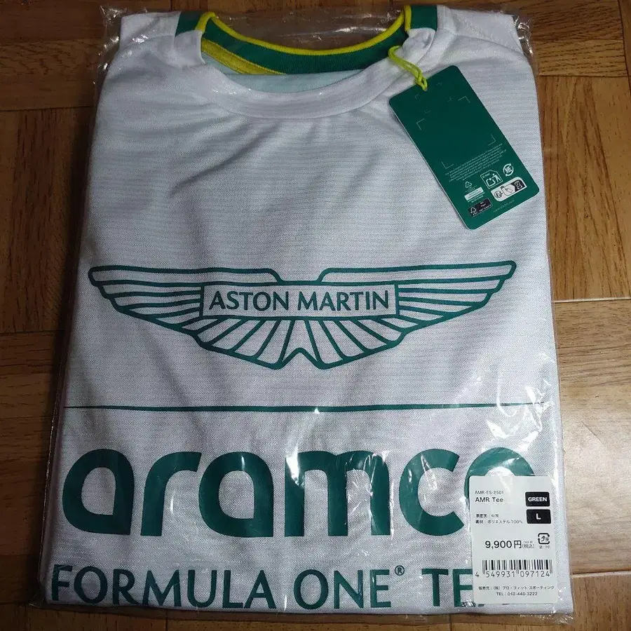 애스턴 마틴 아람코 F1 팀 일본 한정판 티셔츠 2025 amr-es-2501 Color 화이트 화이트와 그린 디자인. - 브랜드: Aston Martin - 모델명: AMR Tee - 소재: 폴리에스테르 100% - 사이즈: L - 색상: 화이트/그린