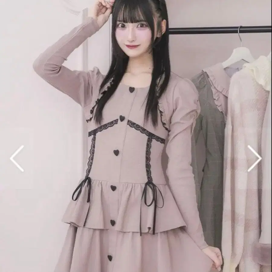 pium 피움 하트 버튼 티어드 리브 원피스 핑크