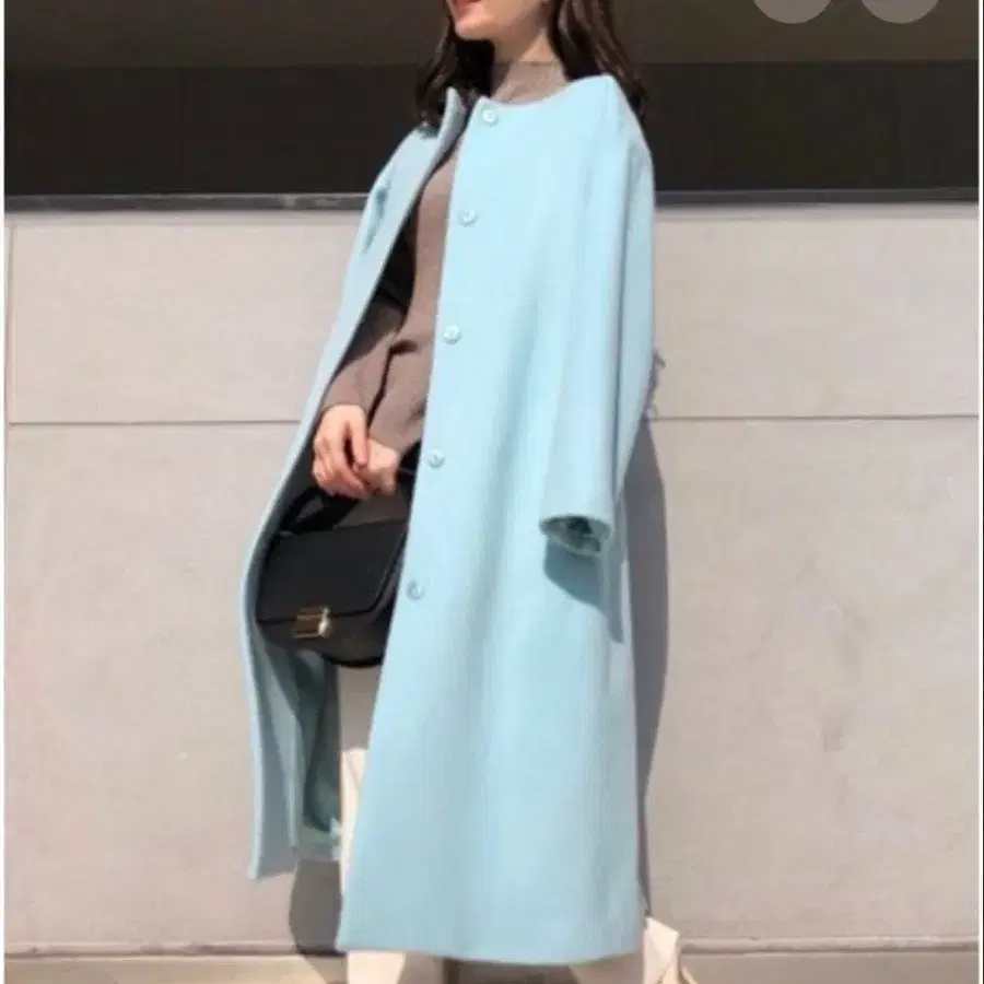 A4762 미라 오웬 롱 코트 울 노카라 파랑 스카이블루 F