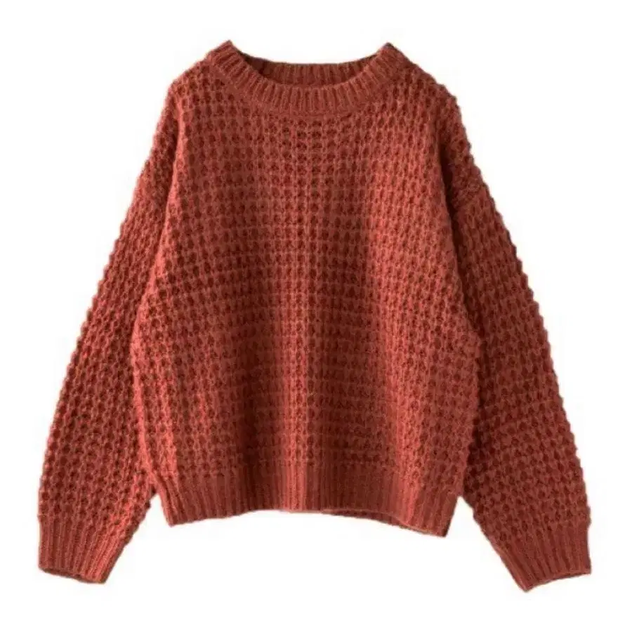 와플 편직 크루넥 니트 테라코타 오렌지